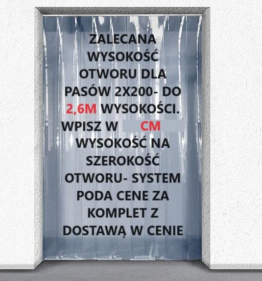 Gotowa kurtyna paskowa wykonana z pasów PCV grubości 2mm szerokości 200mm kolor bezbarwny typ Standard punkt pękania -35 stopni.