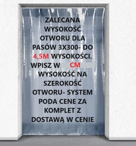 Gotowa kurtyna paskowa wykonana z pasów PCV grubości 3mm szerokości 300mm kolor bezbarwny typ Standard punkt pękania -35 stopni.