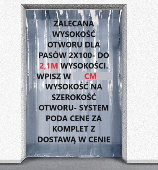 Gotowa kurtyna paskowa wykonana z pasów PCV grubości 2mm szerokości 100mm kolor bezbarwny typ Standard punkt pękania -35 stopni.